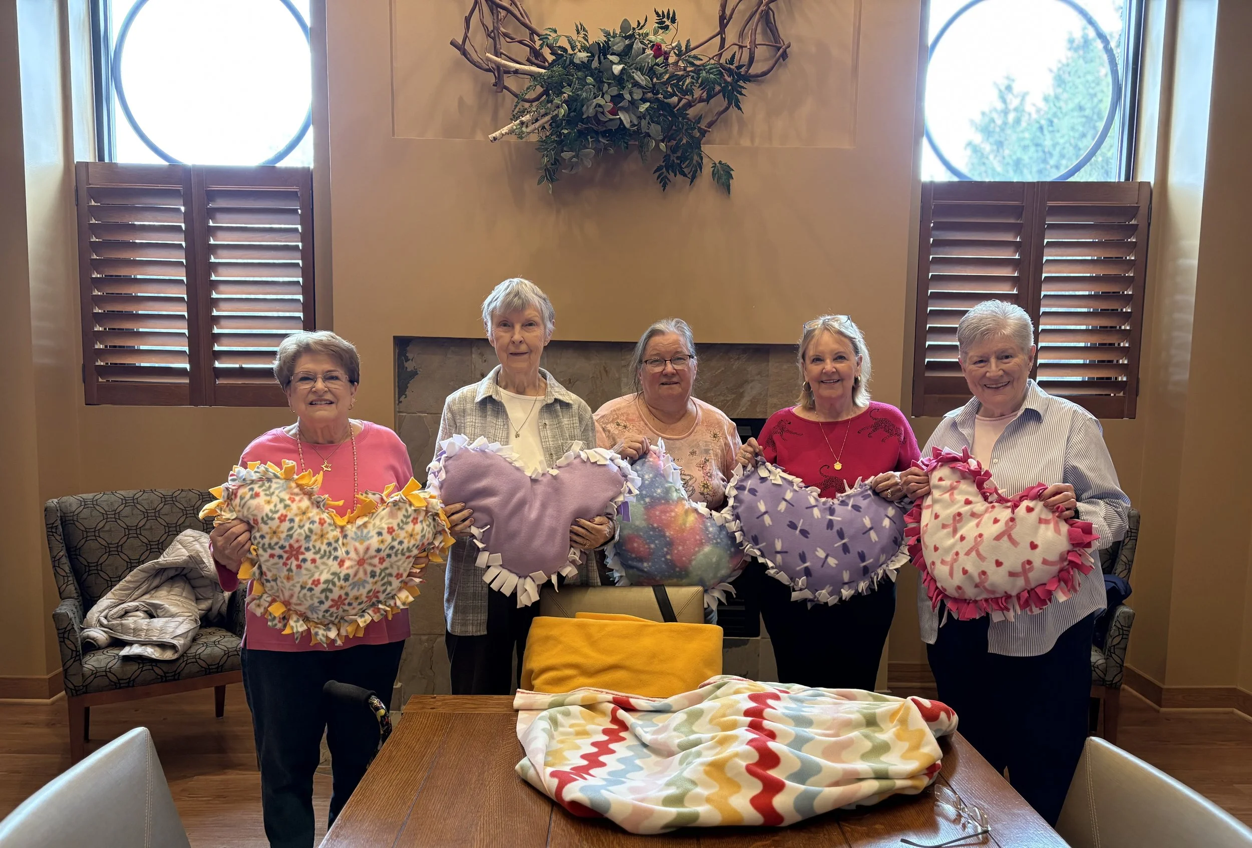The Hearts and Hands Ministry normally meets the third Thursday of each month from 1-2:30pm in the Fireside Room. During a time of fellowship, shawls, pillows, sweaters and blankets are created to comfort those in need and to celebrate life’s joys. Each piece becomes an expression of love – and the loving care of God who works through the crafters. Contact the church office by email for more information.